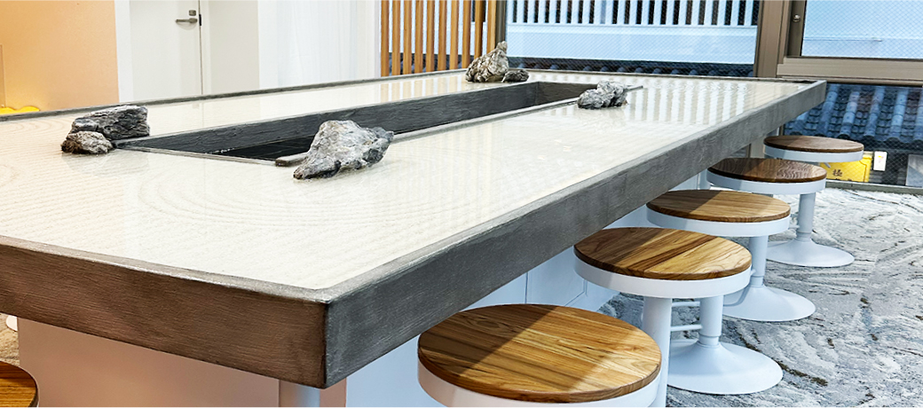 古都鎌倉を愉しむカフェ 日本庭園の枯山水の上に水の流れをつくり“濡山水”と名付けました。 清らかな水の音、木のぬくもりと和の文化を愉しみ 豊かな時間をお過ごしくださいませ。 こだわりの日本茶 お抹茶・ほうじ茶をメインに茶筅でつくるお茶のラテ。 仕上げはお客様の目の前でお茶をそそぎます。 高地で育った稀少な極浅蒸煎茶もご用意しています。 羊羹にみたてたテリーヌ お抹茶、ほうじ茶、チーズの3種類をご用意しています。 オーブンでじっくり焼き上げ柔らかくしっとり仕上げました。 お知らせ NEWS 2024.12.21テレビ東京「出没!アド街ック天国」で紹介されました。 2024.08.25日本テレビ「スクール革命!」で紹介されました。 2024.08.13テレビ朝日「出川一茂ホラン☆フシギの会」で紹介されました。 2024.06.16フジテレビ「なりゆき街道旅」で紹介されました。 MORE 店舗情報 STORE INFO 神奈川県鎌倉市雪ノ下1丁目6-28ランプ雪ノ下2A TEL 046-739-6396 営業時間 11:00〜17:00(L.o 16:30)定休日 不定休 東京都渋谷区桜丘町3-4渋谷桜ステージ SAKURAサイド2F TEL 03-6416-1722 営業時間 11:00〜20:30(L.o 20:00)定休日 不定休